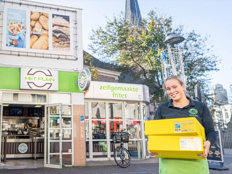Snackbar Het Plein is het kloppend hart van Het Plein Fast Food. De snackbar bestaat al meer dan 20 jaar en is gevestigd aan het bekendste plein van Zandvoort. De dagelijkse leiding van de snackbar is in handen van ondernemers Robert Slag en Mimoun Abdellaui. Robert vertelt over hoe zij binnen de cafetaria altijd op zoek zijn naar nieuwe, voor hun gasten interessante, mogelijkheden. ‘Zo introduceerden we de afgelopen jaren een broodjeshoek, SWIRL’s balies en hebben we tegenwoordig zelfs een speciale ‘burgerhoek’.